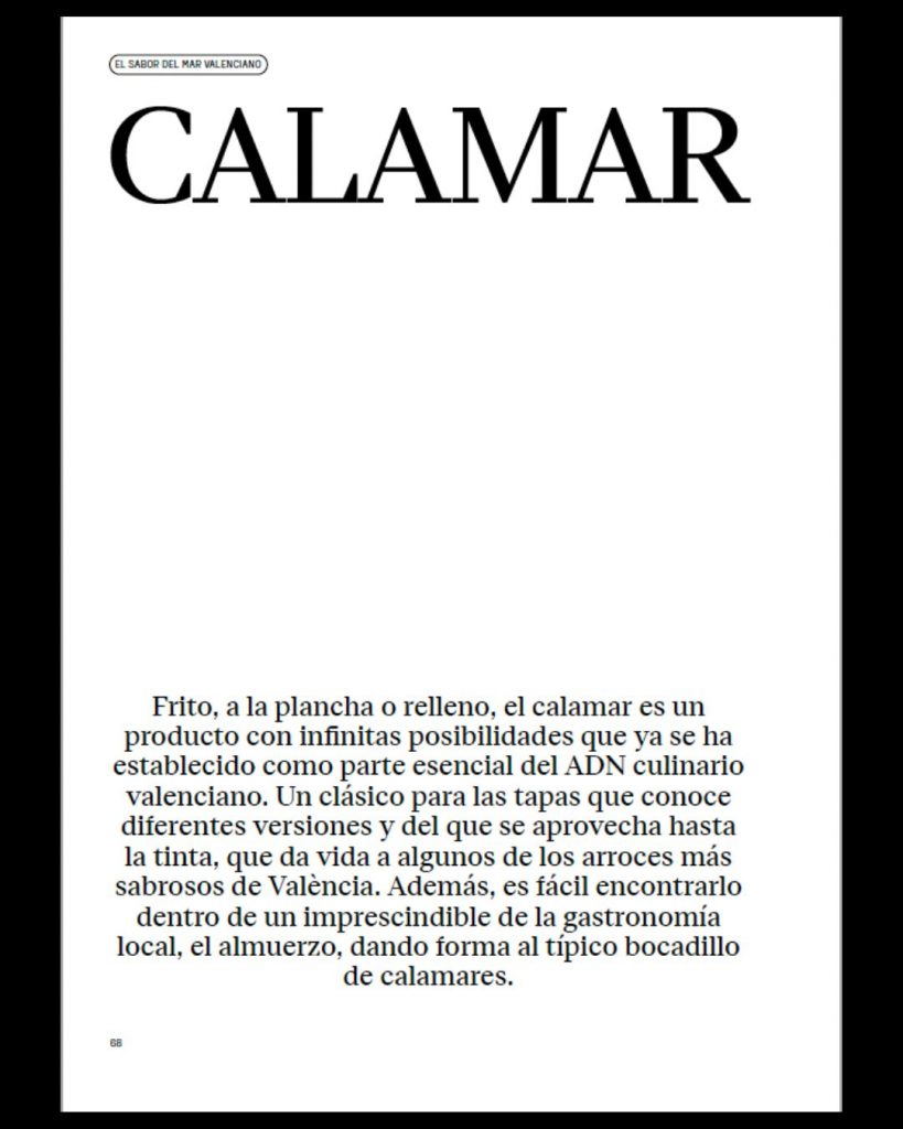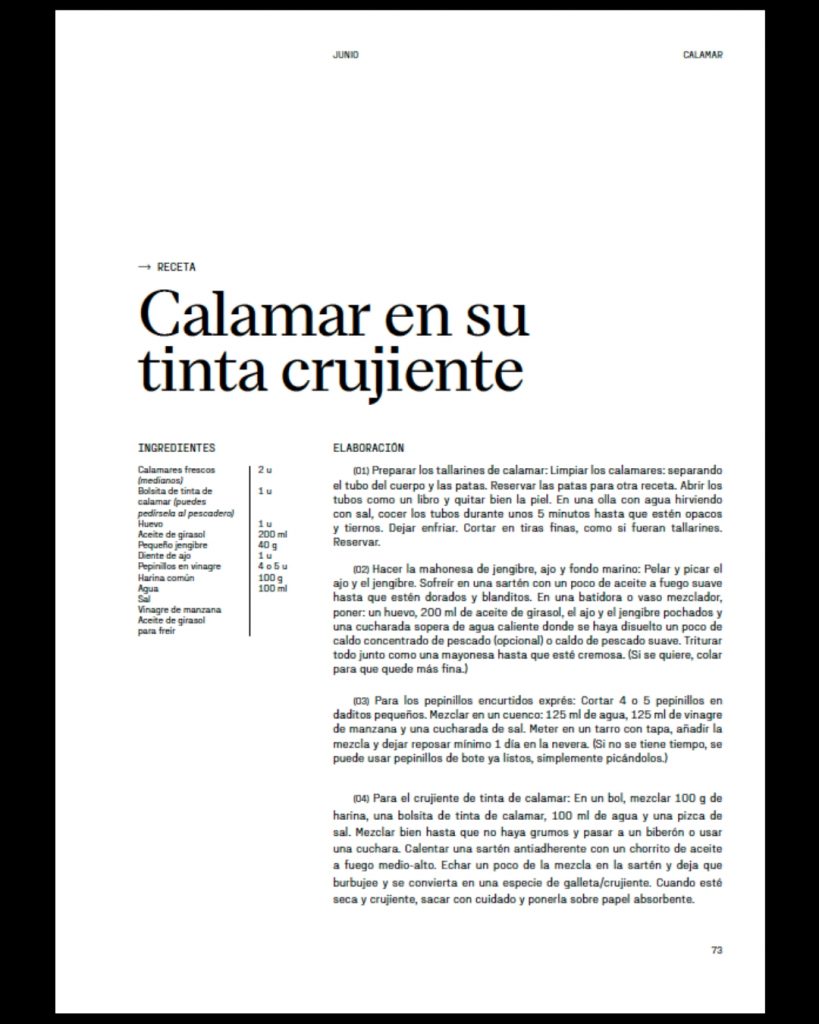 Calamar en tu tinta crujiente es el plato de la chef María José Martínez que forma parte de esta guía, que recoge doce recetas con pescado para cada mes del año, se ha elaborado junto a otros cocineros de restaurantes que también como Lienzo están muy vinculados al mar, para reforzar la proyección de València como despensa del Mediterráneo y el papel del litoral como fuente de producto fresco, local y de calidad.