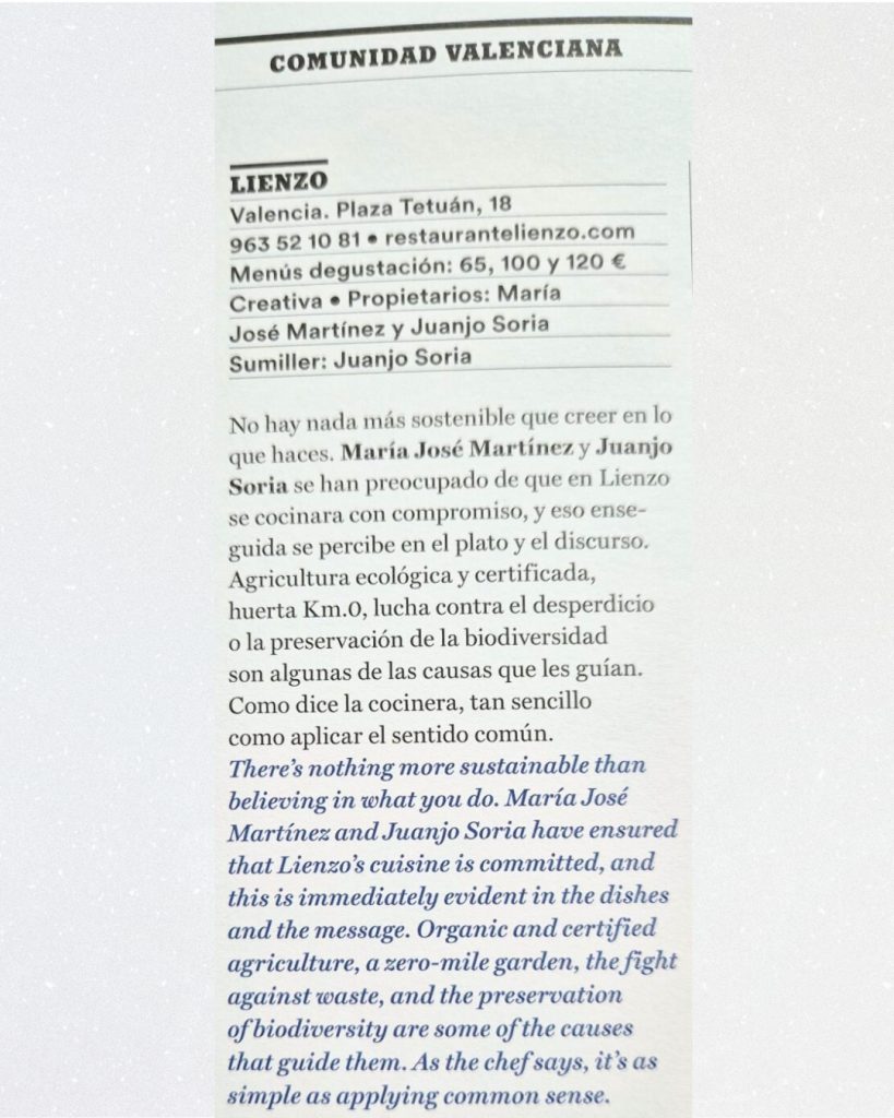 La guía Tapas, lanza su nueva edición 2025/26 e incluye de nuevo al restaurante Lienzo en ella. Aquí os dejamos su descripción.